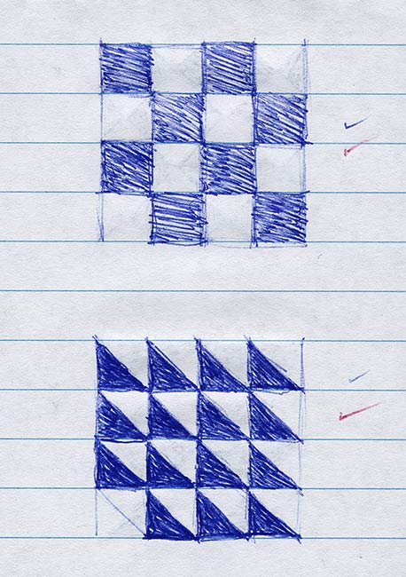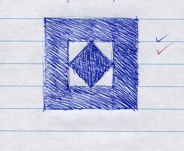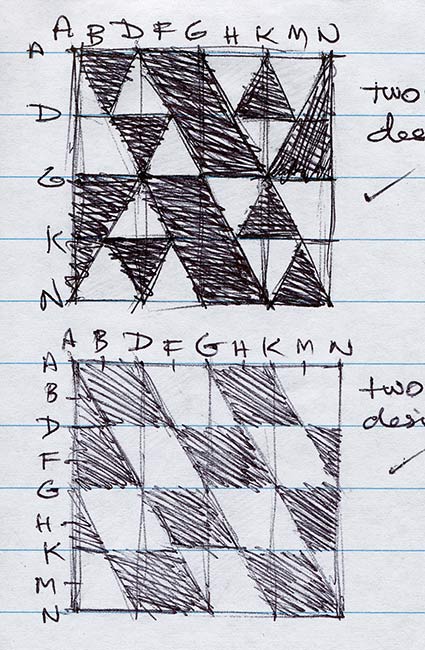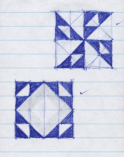 Sometimes, I wanted to develop some strong designs that could possibly be used as a logo for a company. At other times, I wanted to see what interesting patterns I could produce. The hand-drawn designs on this page represent the truest form of my original idea for developing some simple designs using the '4 x 4 square grid' scheme. |