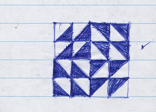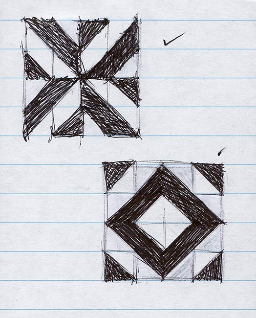 Sometimes, I wanted to develop some strong designs that could possibly be used as a logo for a company. At other times, I wanted to see what interesting patterns I could produce. The hand-drawn designs on this page represent the truest form of my original idea for developing some simple designs using the '4 x 4 square grid' scheme. |