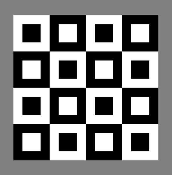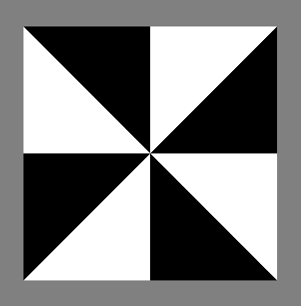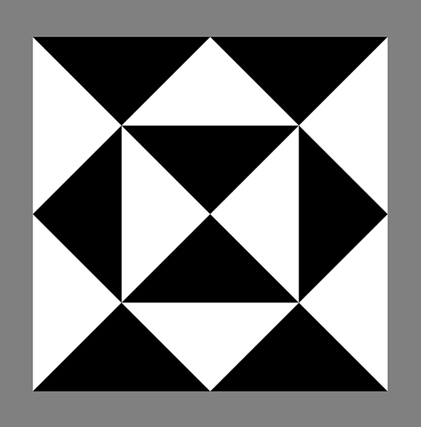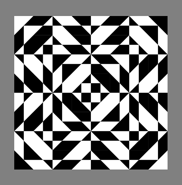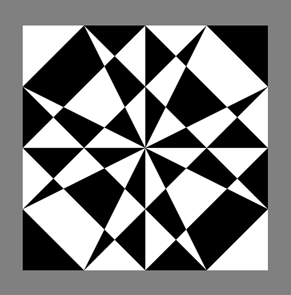 Each of the images shown on this page was rendered in InkScape from a Scalable Vector Graphics (SVG) file. These vector graphics files contain mathematically defined versions of the designs that can be enlarged to any size you would like, with no degradation in line quality. They could be printed out as posters or billboards and still have very clean sharp lines, and excellent precision. It is exciting seeing the precision and geometry of these images. A border of mid grey was set up on the master file (used as the starting point for all of the designs produced), so that all of the developed designs had a grey border outlining the designs. InkScape enabled me to develop the designs using combinations of many layers of shapes. The program allows me to switch on or switch off any layer I wish to see, or hide. I found that I could easily explore trying various combinations of many layers, using a layer combining mode that would reverse the tones for overlapping shapes. For these designs, I only used black and white tones (with the grey border surrounding each design). |
